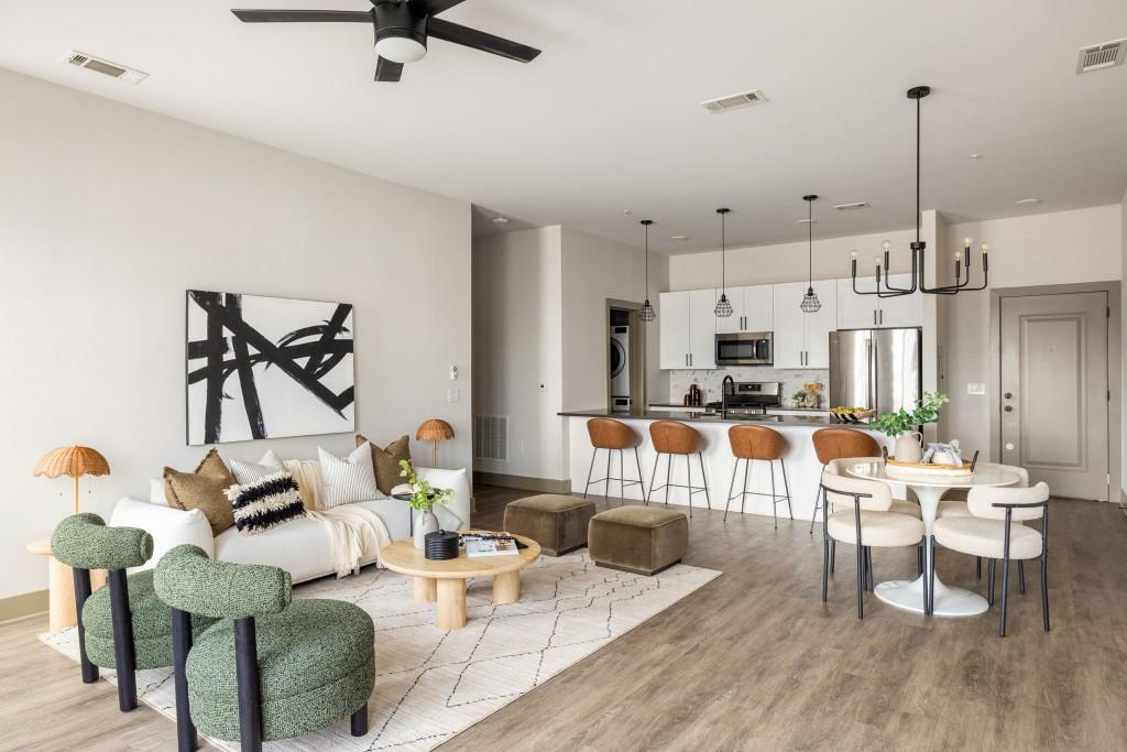 A modern, light-filled townhome featuring an open layout, updated finishes & private back patio.
